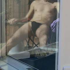 With the first of her underwear removed Essie again steps back into the tank, taking a seat and receiving a second load of the slime from above.