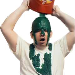 Mr Slime Guy got lowered into a big vat of warm chocolate pudding by megapies