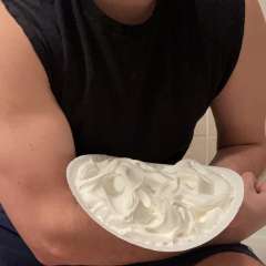 Messy_charlie was surprised by The Great Reinholdo with a big sloppy cream pie to the face